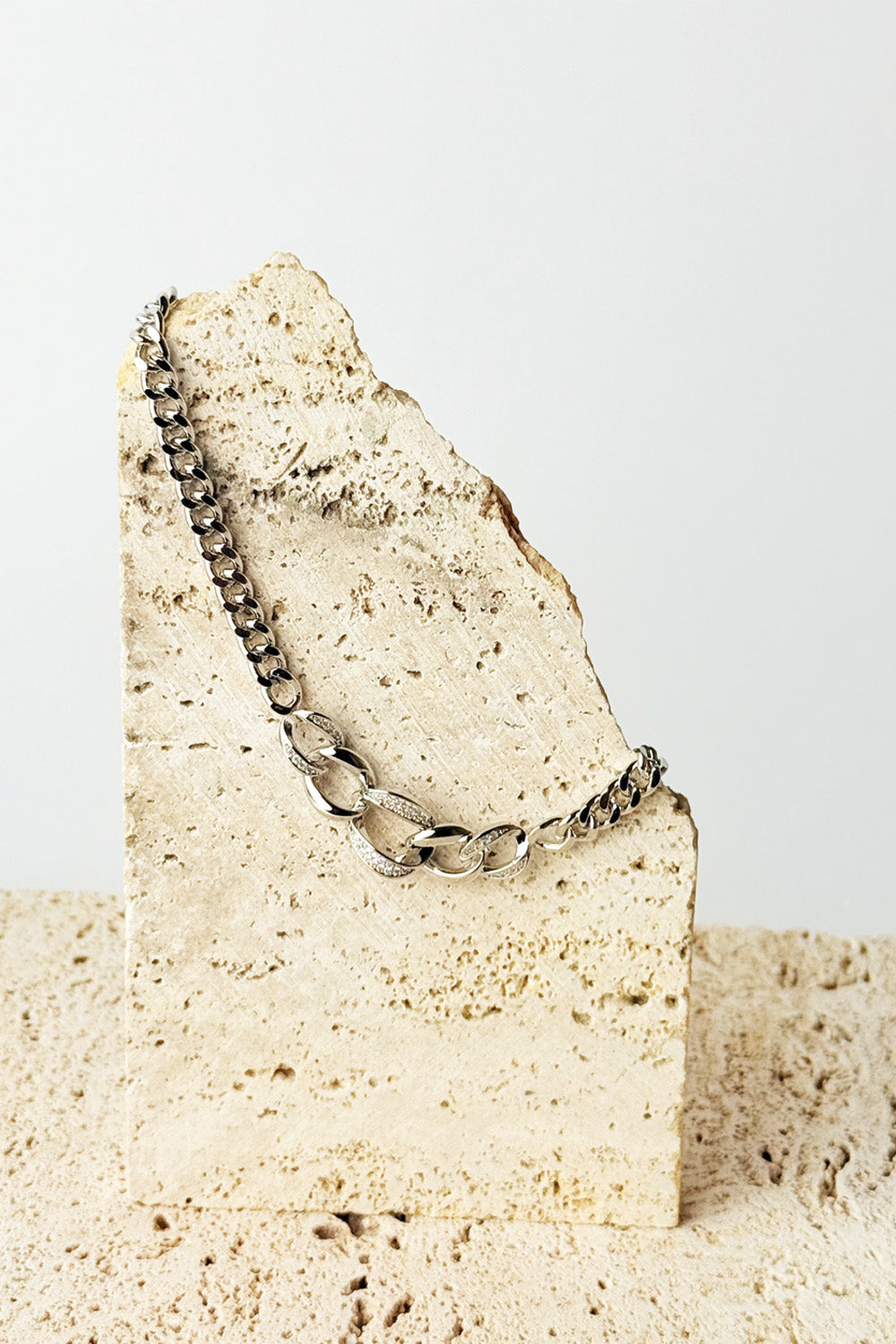 THE NECKLACES ARE LIKELY MADE FROM A BASE METAL SUCH AS BRASS, COPPER, OR STAINLESS STEEL WITH A COATING OF SLVER. PUT ON JEWELRY LAST, AFTER APPLYING MAKEUP, PERFUME, HAIRSPRAY, AND LOTION, AND LET THEM DRY FULLY. AVOID CONTACT WITH WATER AND HARSH CHEMICALS, INCLUDING CHLORINE (POOLS), DETERGENTS, AND HOUSEHOLD CLEANERS. STORE JEWELRY IN A COOL, DRY PLACE, IDEALLY IN A FABRIC-LINED BOX OR AN INDIVIDUAL SOFT POUCH TO PREVENT SCRATCHES.