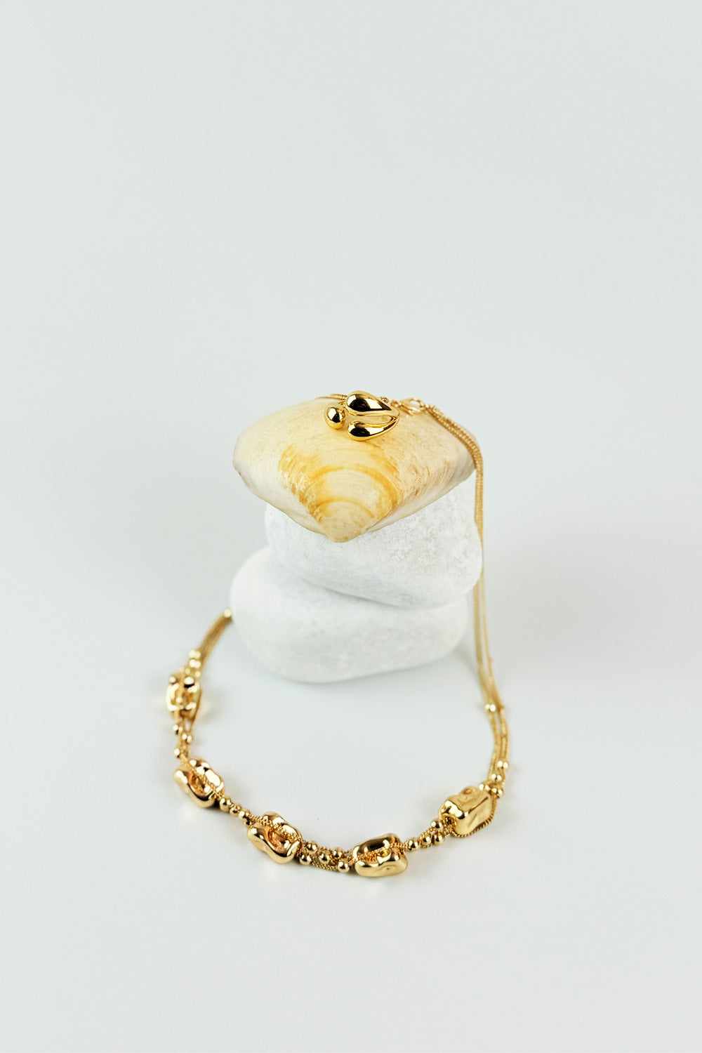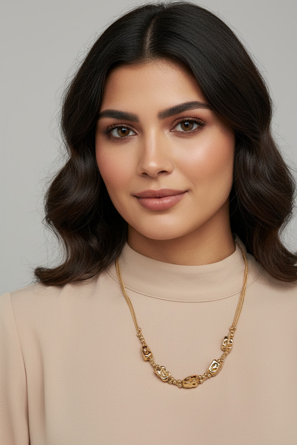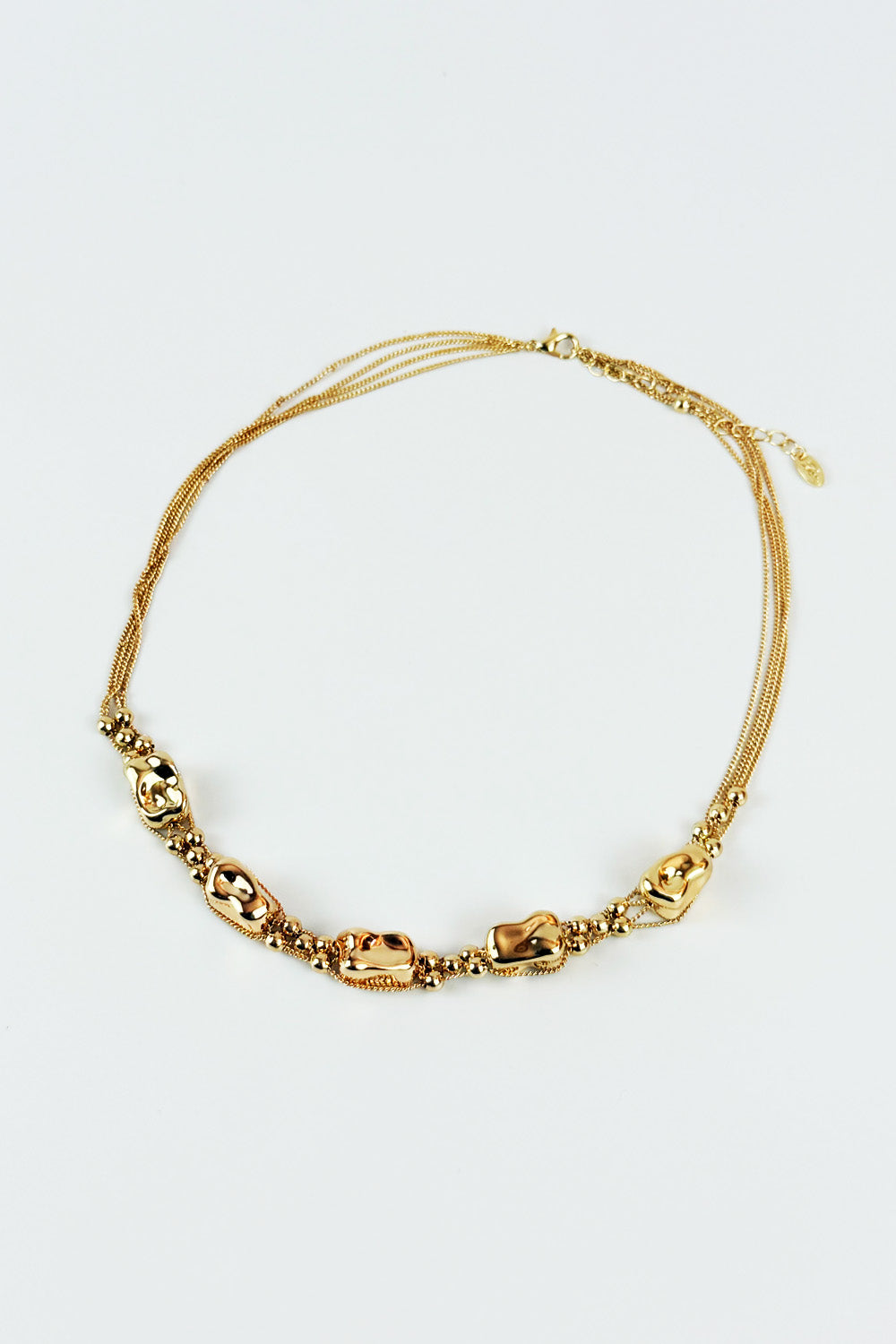 THE NECKLACES ARE LIKELY MADE FROM A BASE METAL SUCH AS BRASS, COPPER, OR STAINLESS STEEL WITH A COATING OF GOLD. PUT ON JEWELRY LAST, AFTER APPLYING MAKEUP, PERFUME, HAIRSPRAY, AND LOTION, AND LET THEM DRY FULLY. AVOID CONTACT WITH WATER AND HARSH CHEMICALS, INCLUDING CHLORINE (POOLS), DETERGENTS, AND HOUSEHOLD CLEANERS. STORE JEWELRY IN A COOL, DRY PLACE, IDEALLY IN A FABRIC-LINED BOX OR AN INDIVIDUAL SOFT POUCH TO PREVENT SCRATCHES.